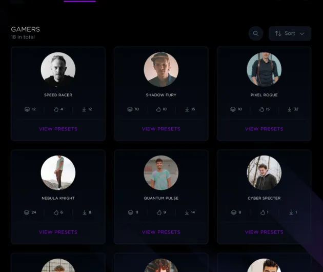 - Közösségi profilok egyedi setupok megosztására és felfedezésére